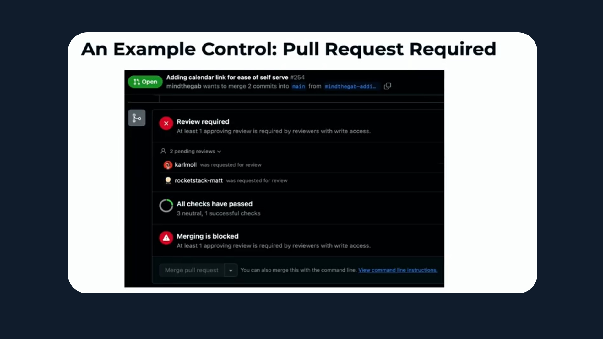 During the joint session at OSFF, Aaron and Toby used a deceptively simple example: the humble pull request. It’s a familiar control in nearly every development team — yet when you look closer, it means different things to different people.