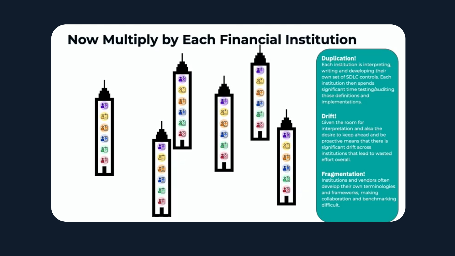 “Imagine if platforms could certify against the FINOS SDLC Controls,” said Aaron.
