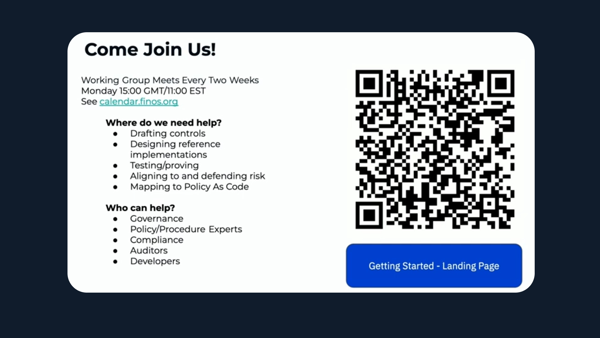 The FINOS SDLC Governance Working Group is open to everyone in the industry. Whether you’re a policy author, platform engineer, auditor, or developer, your perspective matters.